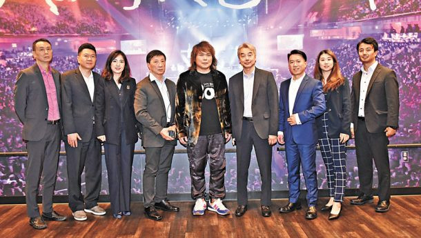 金神大賭場國際市場部資深副總裁梁世傑等高層與伍佰合攝。