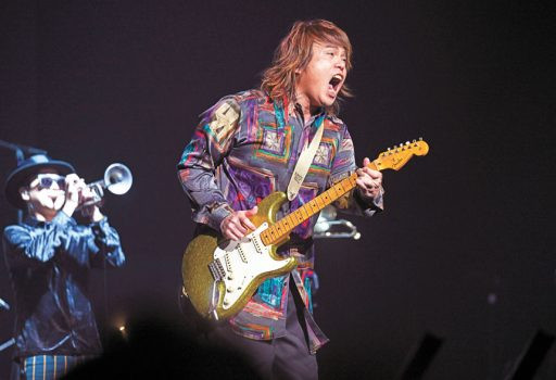 伍佰彈結他時非常投入。