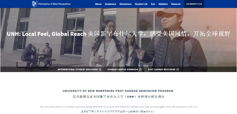 位于美国东北部的新罕布什尔大学位于新罕布什尔州,建于1866年,是一所公立学校,在USNews的2018年全美大学排名中位列103位。学校发言人埃丽卡·曼茨(Erika Mantz)表示:“高考项目”旨在吸引优秀的中国高中毕业生,虽然招生标准仍在进行最后的确定,但在新罕布什尔大学考虑范围内的学生的高考分数经过审查后,很可能还需要参加SAT或与之类似的ACT考试。