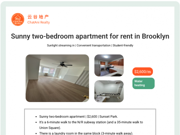 法拉盛全新建豪宅2室一厅2浴2800全包
