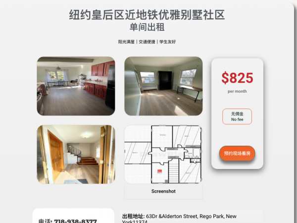 皇后区Queens_Rego-Park_单间出租825