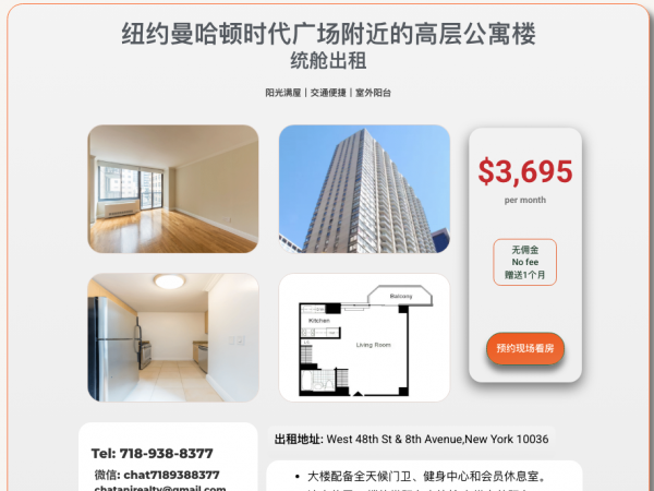 纽约曼哈顿时代广场附近的高层豪华公寓楼3695
