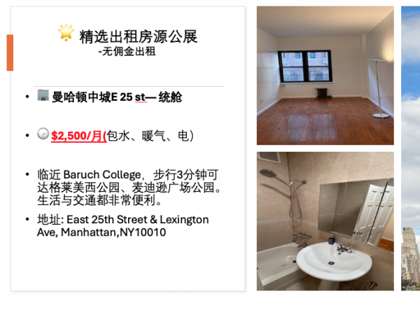 纽约曼哈顿中城带阳台一室一厅出租$4425/月包水暖