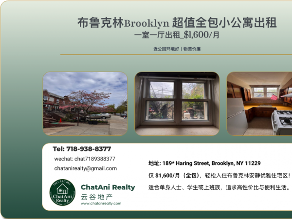 布鲁克林Brooklyn 超值预算友好全包小公寓出租1600