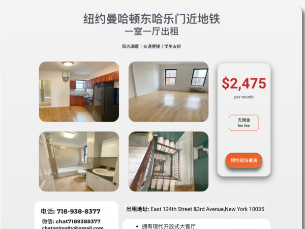 纽约曼哈顿东120街全新一室一厅出租1815 [3图]