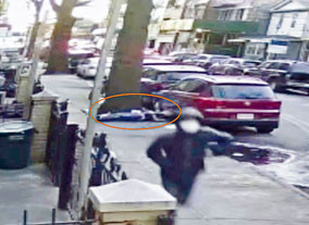 圖為案發時的視頻截圖,嫌犯開槍後,受害人倒地。(讀者提供)皇后區法拉盛(Flushing)10日傍晚發生一起槍殺案,一名中年華裔男子被另一名華男當街開槍射殺,一槍斃命在頸部,現場街邊及積雪上還留有血跡,截至10日晚,嫌犯仍在逃;警方封鎖案發現場附近街區進行調查,直至深夜。