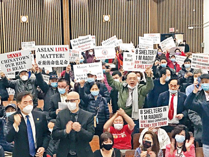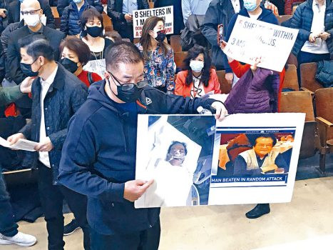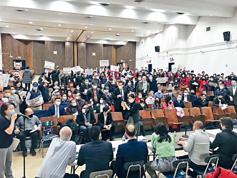在社區民眾及民選官員施壓下,遊民局及第三社區委員會昨(11日)終為東百老滙91號遊民收容所在華埠131初中禮堂展開社區會議,由於疫情關係校方只容許200 人進場,但卻有500多人出席,約300人在門外不得進入會場引起極大騷亂,場裡場外亂成一遍。公聽會上,對於華埠居民連串質問收容所關鍵問題,遊民局副局長語塞並無法提供答案,關注東百老滙委員會及官員都會部署下一波跟進。