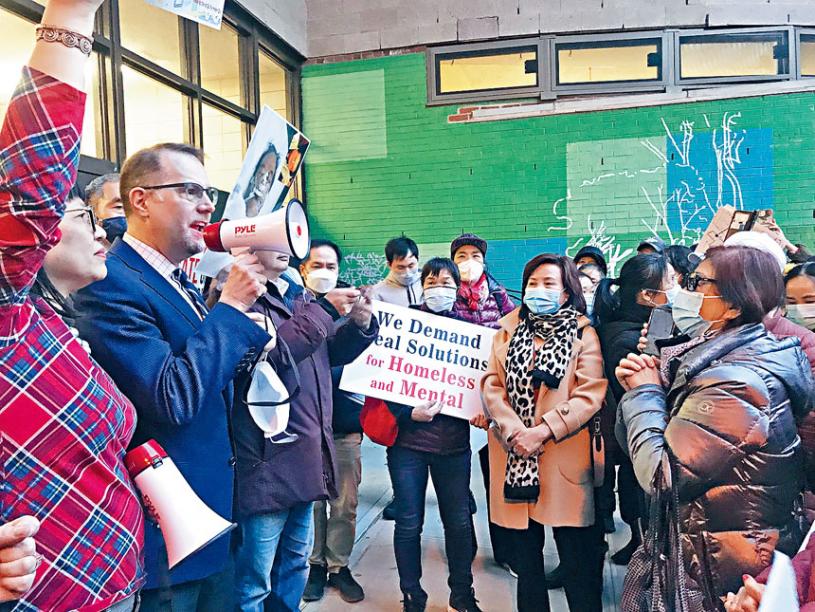場內則有遊民局副局長Erin Drinkwater、Care for the Homeless行政總監George Nashak,第三社區委員會主席,州議員卡凡納、牛毓琳、市議員馬泰等主持社區會議。