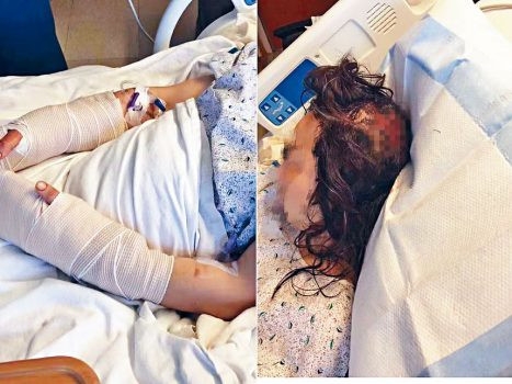 兩名未成年的孩子為保護母親遭砍傷。趙先生提供