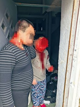 收容涉案兩兄弟的鄰居報警後,應孩子的要求前往查看受害女子。視頻顯示,鄰居在門前呼喊對方時,女事主才跌跌撞撞走出來。當時她渾身是血,只能虛弱地連說「救我、救我」,並詢問兩名孩子的狀況。鄰居見狀先安慰女事主,要求她打起精神,並表示兩名兒子已安全。