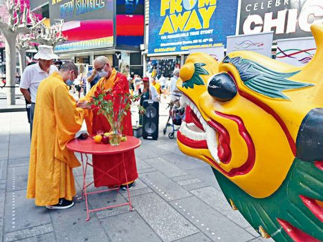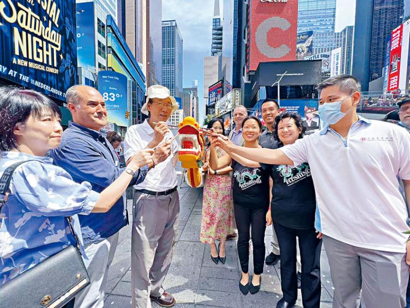 疫情後重啟紐約香港龍舟節,燦爛艷陽下,兩艘精緻玲瓏鑲有金色龍頭的龍舟13日在紐約時報廣場再度成為鬧市吸睛。第30屆紐約香港龍舟節將於7月30及31日在法拉盛可樂娜公園舉行。