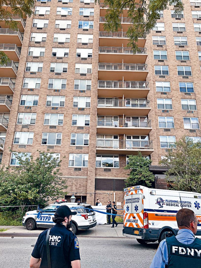 當天下午5點左右,位於法拉盛友聯街(Union St)41-40號的亞洲大廈發生一宗命案。警方表示,死者是32歲的施琴(Qin Shi,音譯),她就住在該大廈,有精神病史。她從16樓的陽台一躍而下,當場死亡,一隻黑色的拖鞋掉在友聯街的車道上。約兩小時後,一名疑似是施琴親友的亞裔女子到場後大聲痛哭,她在警方的攙扶下走進大廈,接受警方詢問。