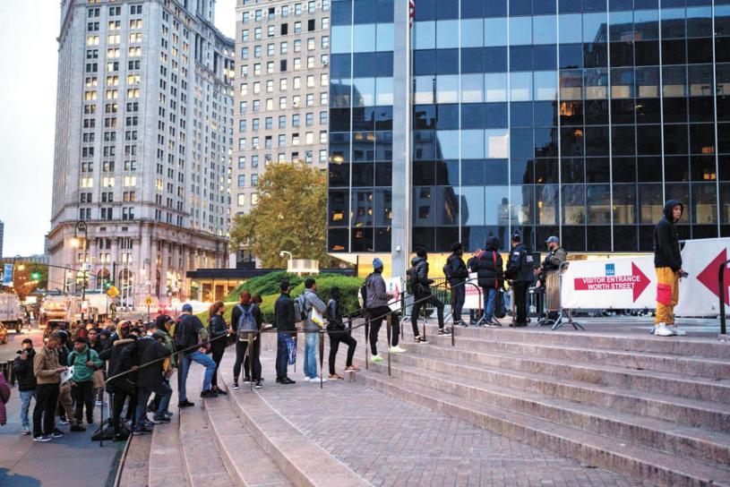 據《紐約郵報》報道,不少尋求庇護者,當中包括部分人帶著嬰兒和幼兒一起排隊苦等,於22日及23日在曼哈頓下城冒著34華氏度的夜間低溫,最後卻被告知無法受理預約。