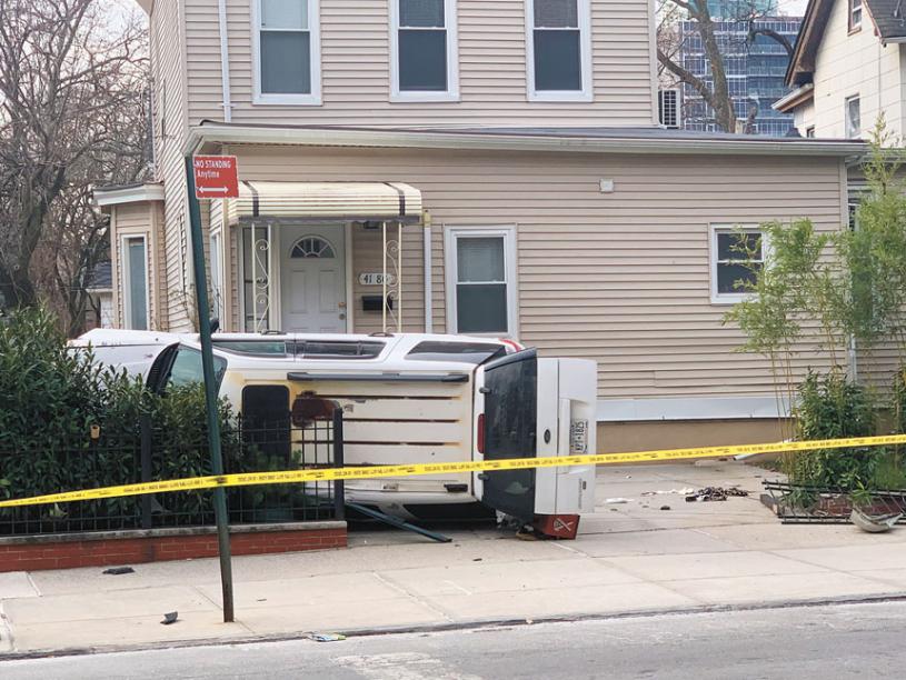警方表示,27日凌晨5點20分左右,在法拉盛富蘭克林大道(Franklin Ave)夾帕森斯大道(Parsons Blvd)附近,一輛2005年產白色福特探險者號(Ford Explorer)家庭SUV突然衝向一棟房屋,撞破圍欄,最後在其前院側翻。