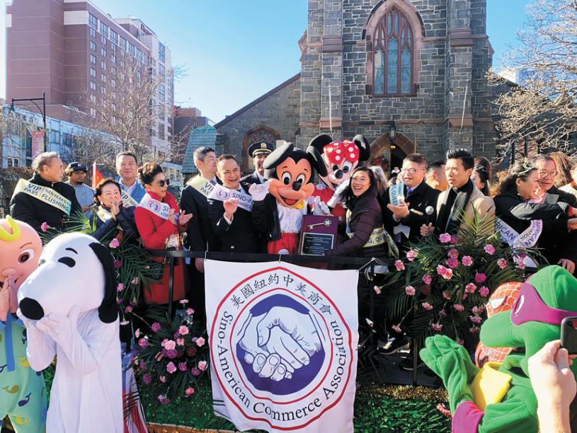 遊行活動於上午11時在緬街的聖公會聖佐治堂(St. George's Episcopal Church)前集結,市議員黃敏儀代表法拉盛社區將一把金鑰匙交到米老鼠夫妻米奇和米妮手中,宣布他們成為法拉盛公民,並希望他們「常回來看看」,遊行開始。