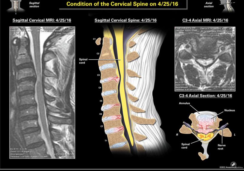 趙先生被送往醫院後,需做手術在那裡留醫15天,然後被送往康復中心進行康復治療30多天。CT掃描顯示他T12骨折和粉碎性。在進一步的醫療評估中,趙先生從脖子到腿有麻木感覺。外科醫生告訴他,他患有被「壓碎」的脊髓。神經外科醫生確定他的脊柱C3-C4水平存在嚴重神經壓迫,需要立即進行頸椎間盤切除術和融合術的緊急手術,以恢復四肢活動的功能。 手術後,趙先生胳膊和腿回復有一些感覺,但四肢活動困難。緊急脊柱手術有效地防止了永久性癱瘓,但沒有修復他四肢的功能。在術後檢查中,趙先生雙手沒有握力,下肢活動困難。六年半過去了,他的康復過程艱鉅而漫長。
