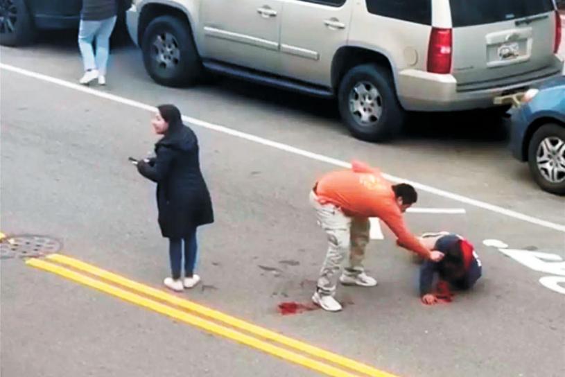 兩人在光天化日下施襲,對他不但拳打腳踢,更反覆用球棒打他。受害者其後還被發現刺了5刀。片中可見,受害者攤在街道中間地上,血濺滿身。一名男子用腳猛踢他的後背,另一名女子則用球棒猛擊他的頭部。