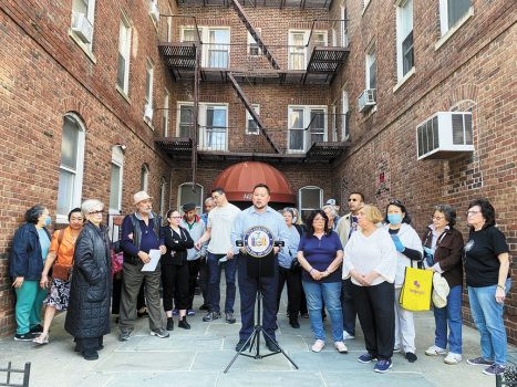位於法拉盛富蘭克林大道(Franklin Ave)142-41號的大樓是一棟穩租公寓,其租客及一樓的商戶7日在州眾議員金兌錫的召集下抗議,共有7户商家及19户住户8個半月沒有燃氣,而房東置之不理。他們要求更換房東,儘快解決問題。