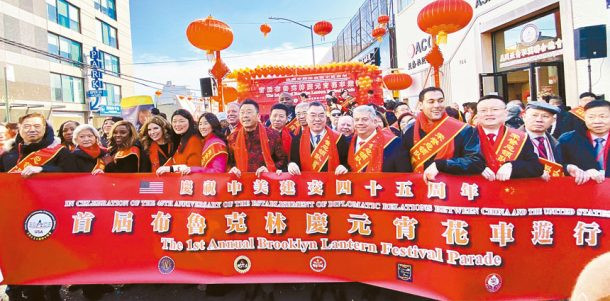 美國亞裔社團聯合總會主辦的首屆布碌崙慶元宵花車遊行暨慶祝中美建交45周年活動,於2月24日在布碌崙8大道華社舉行。此次活動吸引眾多民選官員以及華社代表等上萬名各界人士出席共慶。