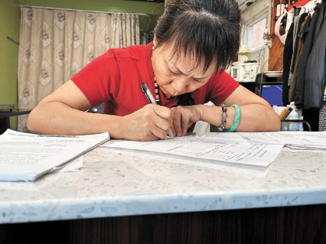 在沒有翻譯幫助的情況下,61歲的陳珠林要花大量的時間填寫法律表格以奪回自己的住房。