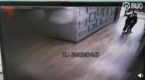 原本助理跟随在二人身后,但随后画面一转,二人再次从刚才的电梯中走出来。