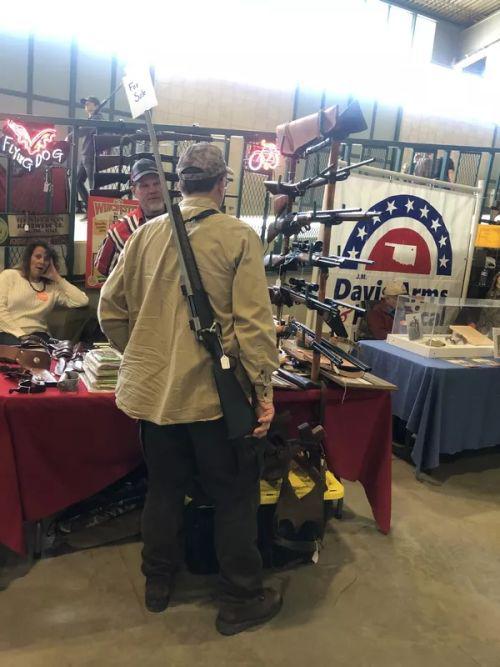 (塔尔萨枪展上背着自家枪的当地人 摄影:徐剑梅)