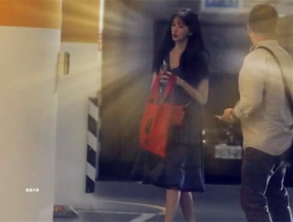 到達停車場後,林志玲就提着一個紅色袋子步伐匆忙的往前走。