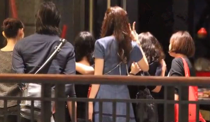 吃完飯後,林志玲和同學們還在餐廳門口拍了大合照。從背影來看,雖然大家都曾是同班同學,年齡也差不多,但明星和素人的差異還蠻明顯的,林志玲的氣質就顯得非常出挑。