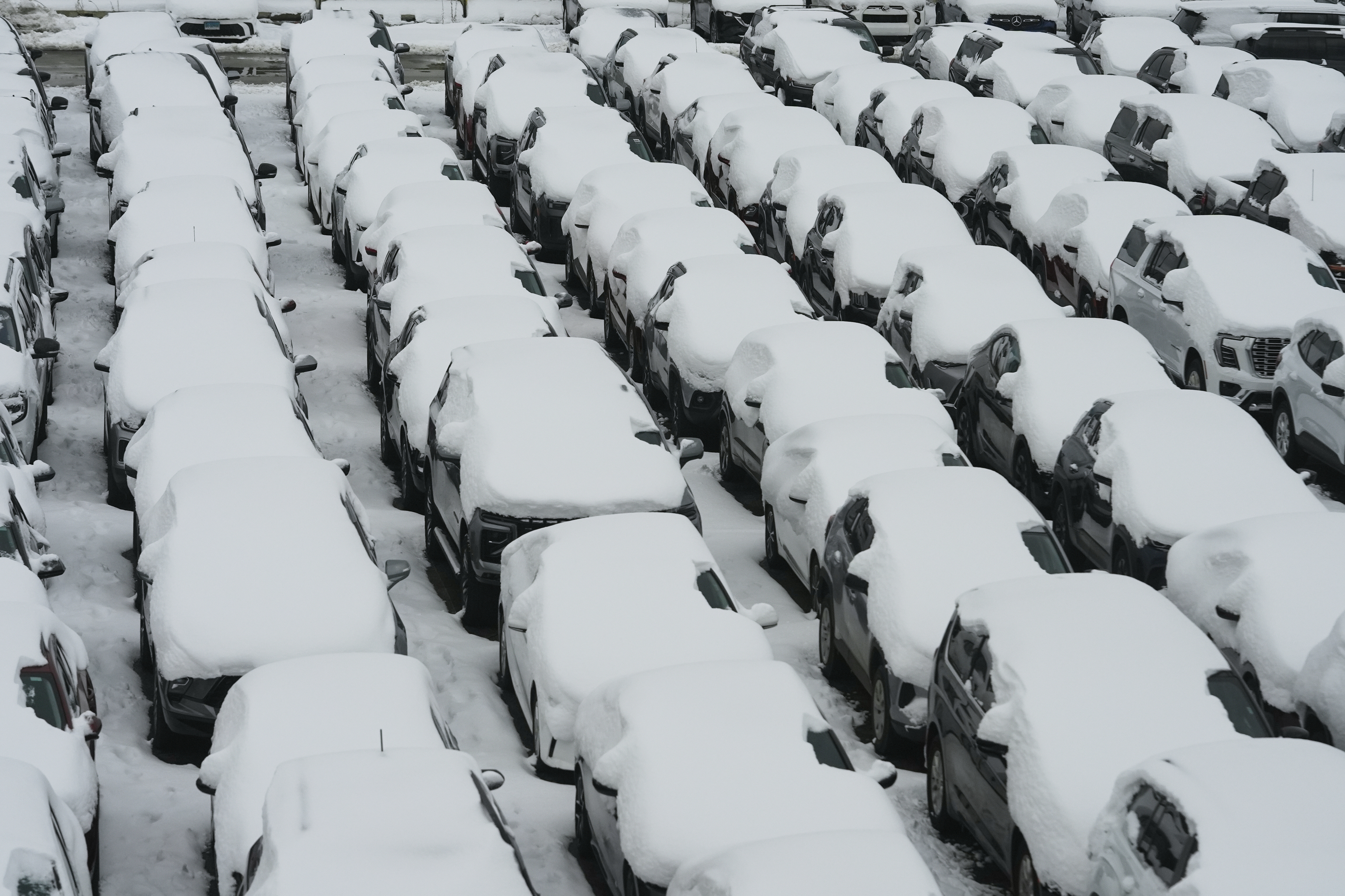 ▲ 11月30日,停靠在芝加哥机场的车辆被大雪覆盖。