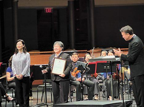 巴德當代樂團以兩人作品向陳怡和周龍致敬,中場時北京中央音樂學院委會主席于紅梅頒發獎狀給陳怡,表揚其音樂成就。本報記者周靜然紐約報道