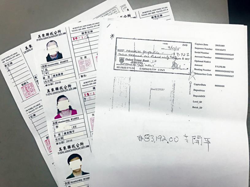 九人調查小組公布的聯成兩個賬戶近50萬元去向存疑,聯成還有20餘個賬戶還待一一核查,其中一張由鄧學源簽名稱83,192元給開平同鄉會轉至Memorial Properties 墓地公司。