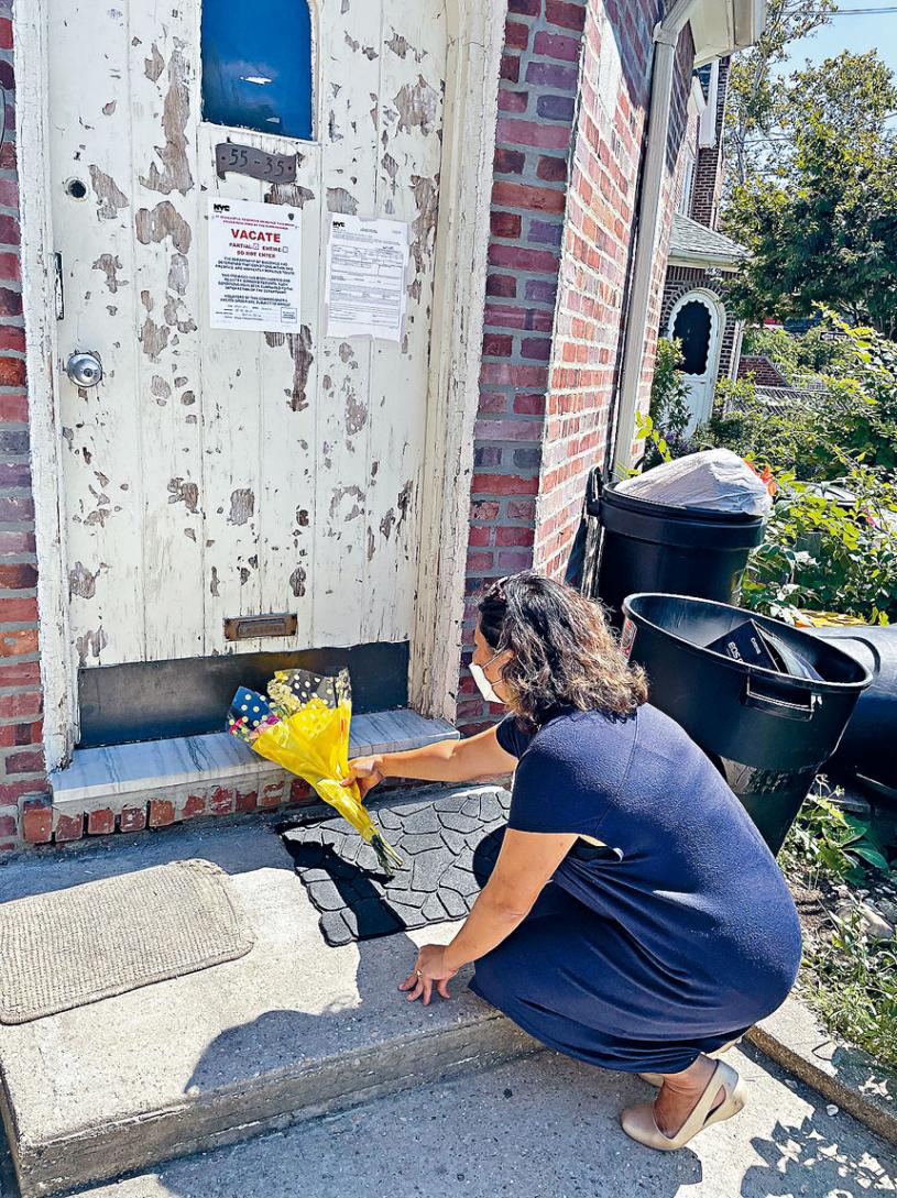 視察行程結束後,孟昭文前往艾姆赫斯特84街55-35號,86歲的華嫗陳悅蓮在其中的地下室溺亡。孟昭文在她的住所獻花,向其家人表示哀悼。