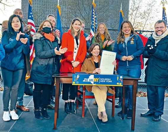 紐約州長胡楚(Governor Hochul)20日與提供救濟食品給社區民眾的服務機構La Jornada,法拉盛20選區市議員當選人黃敏儀及可樂娜,積臣泰(Jackson Heights),艾姆赫斯特選區州市議員等,在以西語裔和亞裔等多元移民社區的皇后區可樂娜(Corona)所在的皇后區科學館外簽署歷史性的「紐約州農場食品供應鏈給全州食物救濟機構法案」。確保不會發生過往農場的牛奶和各食物被扔掉,使數以百萬計需求食品過生活的低收入人士無法獲得營養食物,健康受影響的情況出現。
