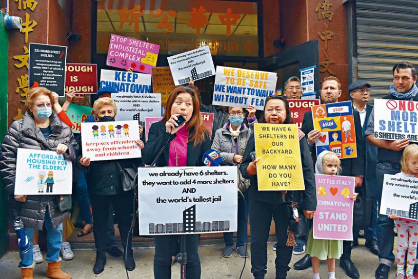 在社區保護及改善聯盟的組織號召下,來自華埠和小意大利的數十名民眾於26日下午齊聚中華公所門前,對格蘭街231號收容所建案再次表達強烈抗議心聲,籲於當晚舉行全體會議的第二社委會代表社區表達民意。