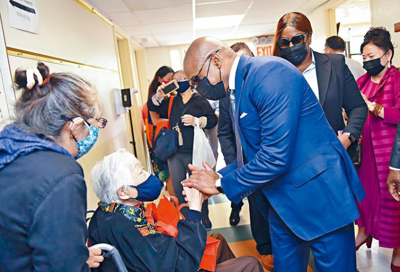 為慶祝亞太裔傳統月和美國老人月,市長亞當斯(Eric Adams)和紐約市老人服務局(DFTA)局長,27日在法拉盛的「本傑明猶太自助老人中心」(Benjamin Rosenthal)派發1,000台iPad平板電腦,以彌補老人的數字鴻溝,方便老人獲取政府服務。