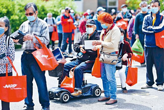 數以千計老人在法拉盛排隊領取免的平板電腦。