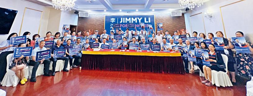 布碌崙華人社區30日在8大道金皇廷酒樓,為正在參加第十選區聯邦眾議員的華裔參選人李江華舉辦造勢大會,來自紐約市各區的各界人士參加,賓臣墟州眾議員寇頓參參與全力為他助選。