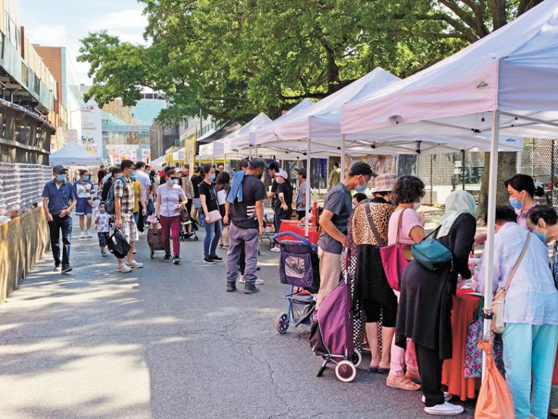 法拉盛商改區(Flushing BID)夏日街坊節疫情緩和後回歸,中秋節登場,逾50家餐飲,小商品零售,醫療機構從上午10點至下午5點在王子街和緬街之間的40路設推攤,數以萬計不同族裔人潮與華人全家總動員逛街,品嚐中國大江南北美食慶祝中國傳統大節中秋節。