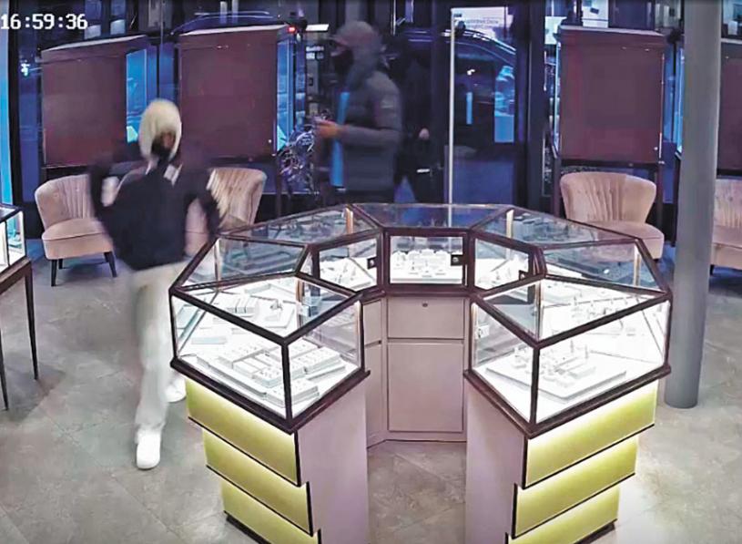 布碌崙一間珠寶店發生盜竊案,3名蒙面賊人闖入店後打破珠寶櫃,於短短38秒內搶走價值近200萬元的首飾,警方17日發布閉路電視畫面通緝疑犯。