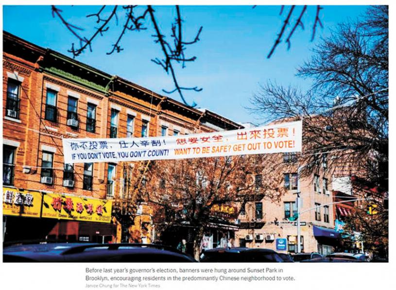 《紐約時報》發布一系列地圖和圖表分析华裔選票,包括日落公園、法拉盛和曼哈頓的唐人街,出現了原來民主黨的藍色轉成紅色。