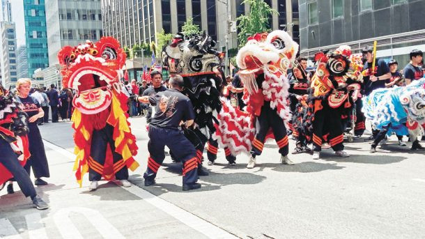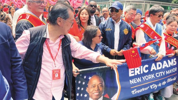 紐約市長阿當斯及眾嘉賓和亞太裔代表,一起帶領隊伍開始巡遊,意味各方團結共融。