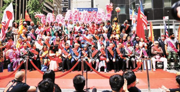 第二屆亞太裔傳統文化中城大遊行昨21日中午12時至下午3時在曼哈頓中城舉辦,包括日本、韓國、印度、菲律賓等十多個亞太地區的花車隊隊伍各自準備了代表自身文化的文藝表演,在花車上載歌載舞。市長亞當斯 (Eric Adams)、國會議員孟昭文、州眾議員入卡范納(Brian Kavanagh)、李榮恩、中國領事館副領事吳曉明,以及各亞太國家的僑界領袖等出席開幕並參與了遊行。