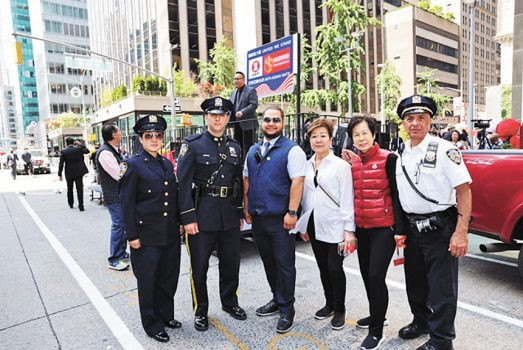 負責遊行安全約紐約市警官員與出席遊行的僑胞合影。