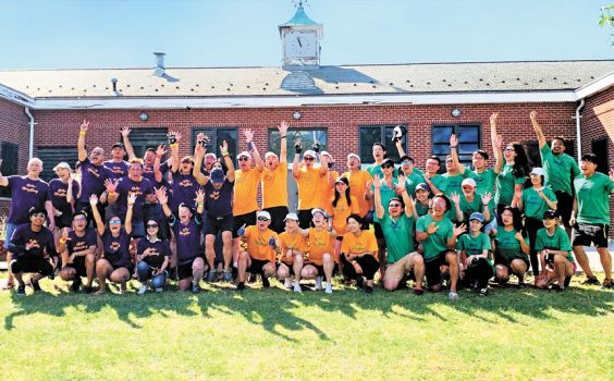 中國駐紐約總領事館總領事黃屏(右四)為龍舟隊健兒加油。
