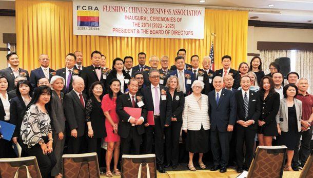 法拉盛華人工商促進會第29屆理事長暨理事會就職典禮1日在法拉成舉行,皇后區檢察官卡絲主持宣誓,連任理事長王耀明醫生與26位理事會成員,首席顧問杜彼得,秘書張嶼麗等正式就任2023-25年新一屆理事會職員。王耀明致詞強調在新冠肺炎疫情之後擴大會員的華商會,加強與社區,政府單位等溝通合作,一起工作把疫情造成的傷害修補和為繁榮社區經濟,共同努力,華商會將在社會公益作出更大貢獻。