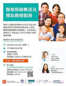 王嘉廉社區醫療中心宣布,與皇后區法拉盛圖書館14日共同舉辦一場免費的「醫療保險概述及獲得醫療服務」,現場及在線醫保專題講座,地點更改在亞洲人平等會法拉盛辦事處,地址在法拉盛41大道133-29號201室。講座主旨是幫助社區瞭解各醫療保險的承保範圍,以及如何為個人及家人選擇可負擔的醫療保險。