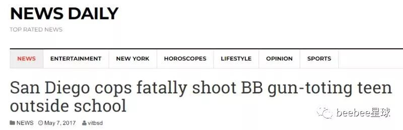 圣地亚哥条子在学校外对一名手持BB枪的少年开枪
