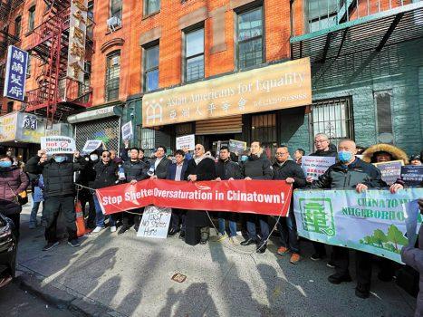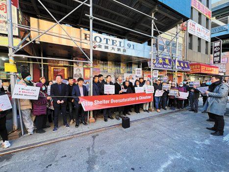 大華埠民權聯盟成員王鏑表示,2021年底,紐約市遊民局黑箱作業,即使唐人街已有7家遊民所之多,仍然決定在東百老匯91號興建另一間針對單身男性的遊民所,而且一樓更設有一个遊民診所,為社區帶來極大風險。