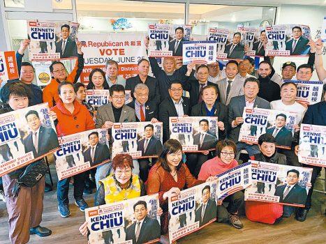 社區維權倡導者趙靖桉(Kenneth Chiu)17日在皇后區法拉盛宣布以共和黨員身份,競選紐約州眾議會25選區眾議員,挑戰己連選連任多次的現任民主黨籍眾議員李羅莎。共和黨籍布碌崙選區州議員鄭永佳,布碌崙社區領陳善莊等跨區來到皇后區與支持者高呼「趙靖桉,當選」造勢。