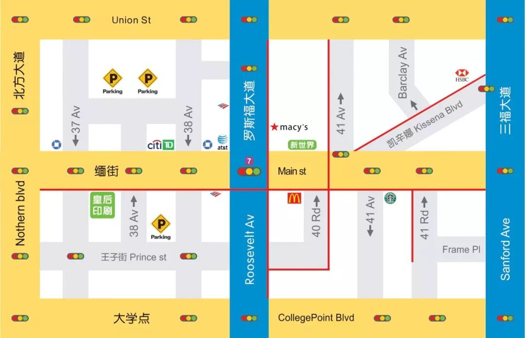 969号条例将禁止法拉盛市中心街道的所有人行道障碍物,其中还包括,禁止在以下地点开设按摩店,缅街上的北方大道与三福大道之间,罗斯福大道上的大学点与Union街之间,凯辛娜上的41st与Barclay ave之间,王子街上的40路与缅街,41av上的缅街与Union街之间,41路上的缅街与Frame Place之间。以上地图有红色线均为禁区,不得再在此区域从事按摩行业,这一新规是硬性要求法拉盛红灯区往周边迁移。